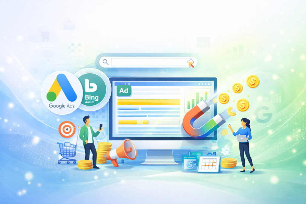 Wij bouwen slimme, datagedreven SEA-campagnes in Google & Bing die direct verkeer, leads en omzet genereren — zonder verspilling van advertentiebudget.